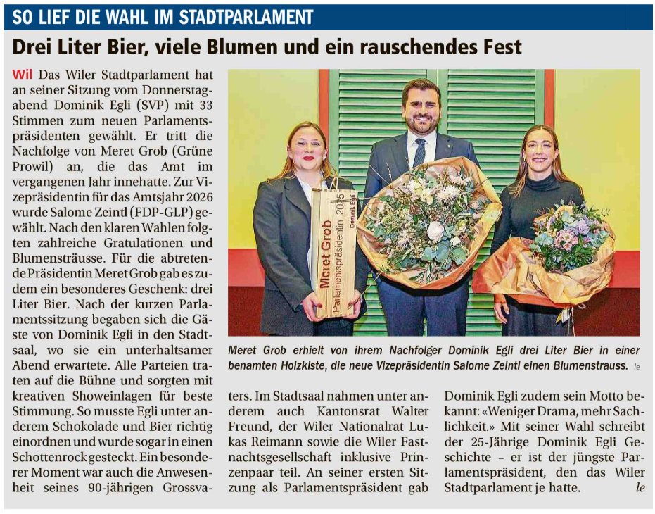 Bericht in der Wiler Zeitung